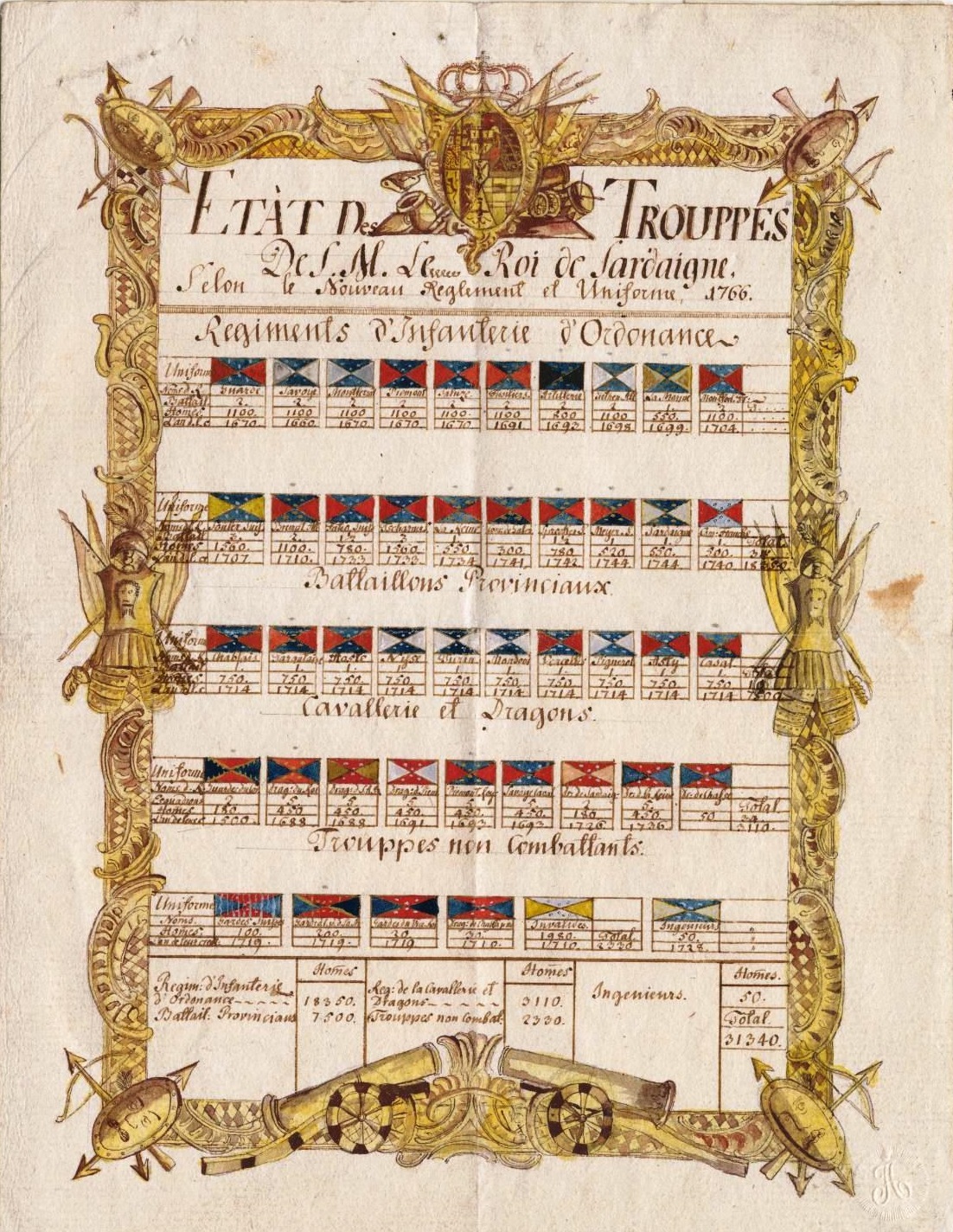 Ètat des Troupes de S.M. le Roi de Sardaigne Selon le Nouveau Reglement et Uniforme |