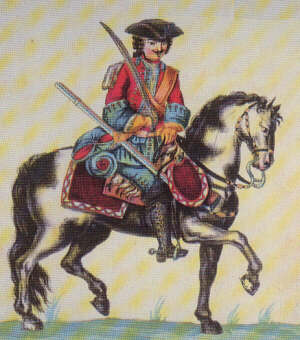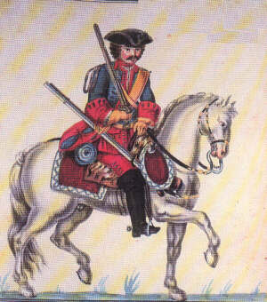 | La data probabile di questo album, in base al nome dei reggimenti stranieri citati, è il 1772. Si può tuttavia osservare che le gualdrappe e i coprifondine qui illustrate non sono del tipo introdotto nel 1750, descritto nelle pagine precedenti, ma del modello usato precedentemente. |