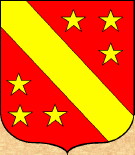 Di rosso, al semivolo d'argento, accostato da tre stelle d'oro, 2, 1 [D'Hozier, Armorial général de France; A. Mandrot, Armorial historique du canton de Vaud] Di rosso, al volo d'argento, accostato da tre stelle dello stesso, 2, 1 [D. L. Galbreath, Armorial vaudois] |