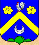 D'azzurro, al gallo ardito d'oro, crestato e unghiato di rosso, posato su un colle di tre cime, di verde, e accompagnato in capo da due stelle, del secondo [M. d'Angreville, Armorial historique du Canton du Vallais] |