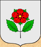 D'azzurro, alla rosa d'argento, con il gambo curvato a sinistra, accompagnata in capo da tre stelle (6), d'oro [Armorial Valaisan - Walliser wappenbuch] |